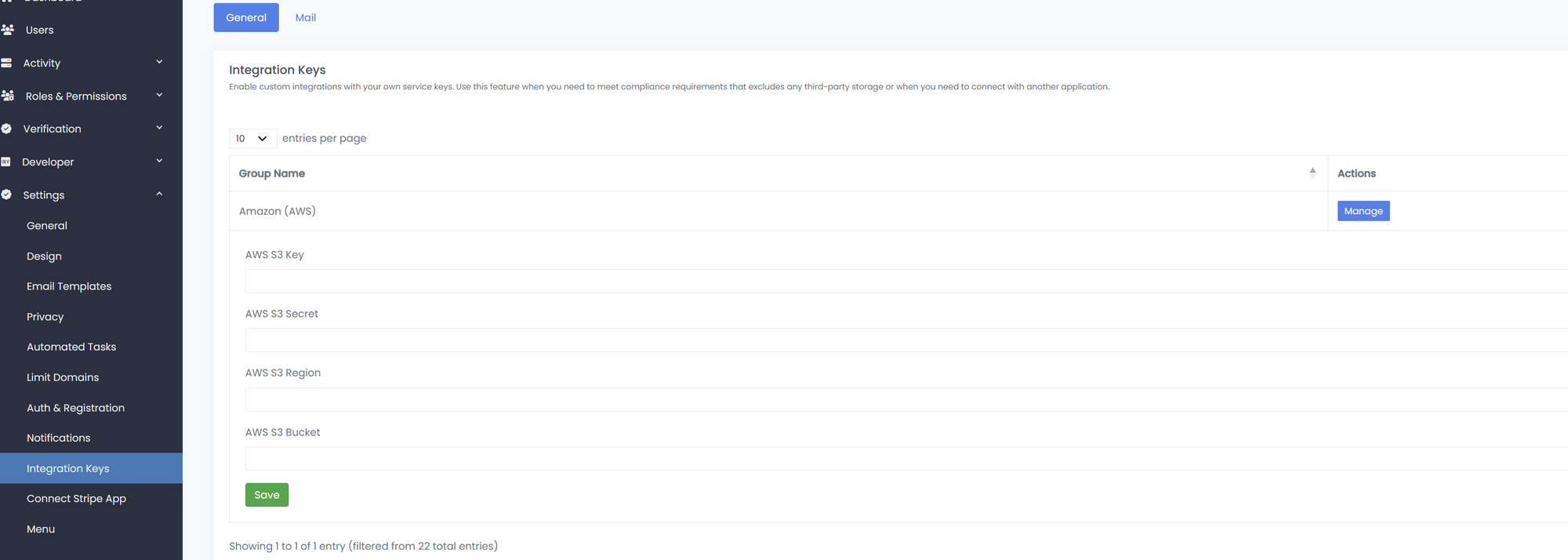 Next, you need to add a new AWS Credential to your Trust Swiftly account. For this, go to the How to Customize Integration Keys and enter the new AWS S3 Credentials. Verify the keys are accurate as you will not be able to see them again. To update you must re-enter all the credentials.