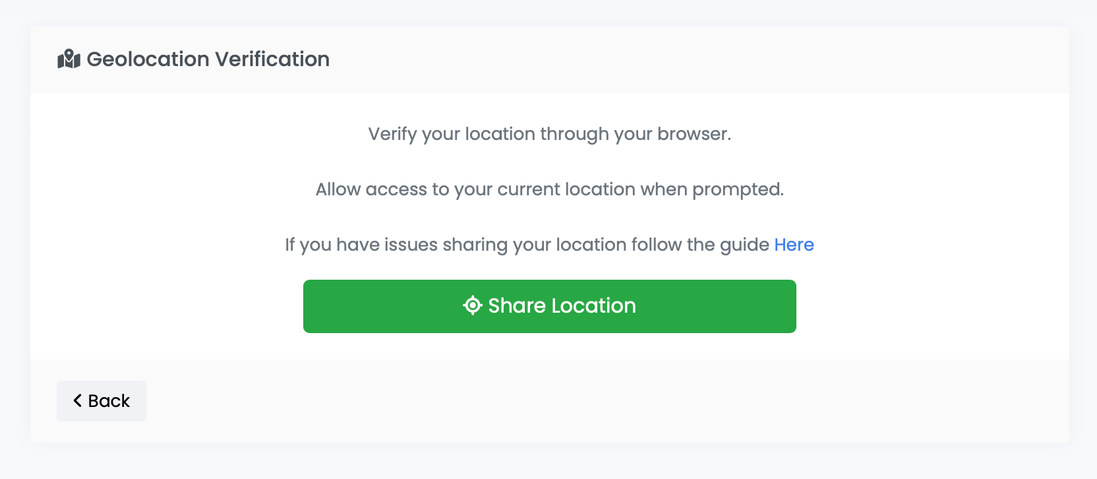 Step 2: Click on the ‘Share Location’ button, and allow access via your browser.