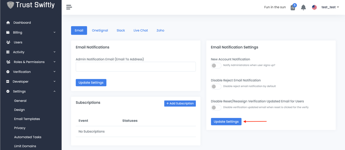 Step 2: Change notification preferences. The notifications preferences will be opened, allowing you to control the notifications. Once completed, click on the ‘Update Settings’ button.