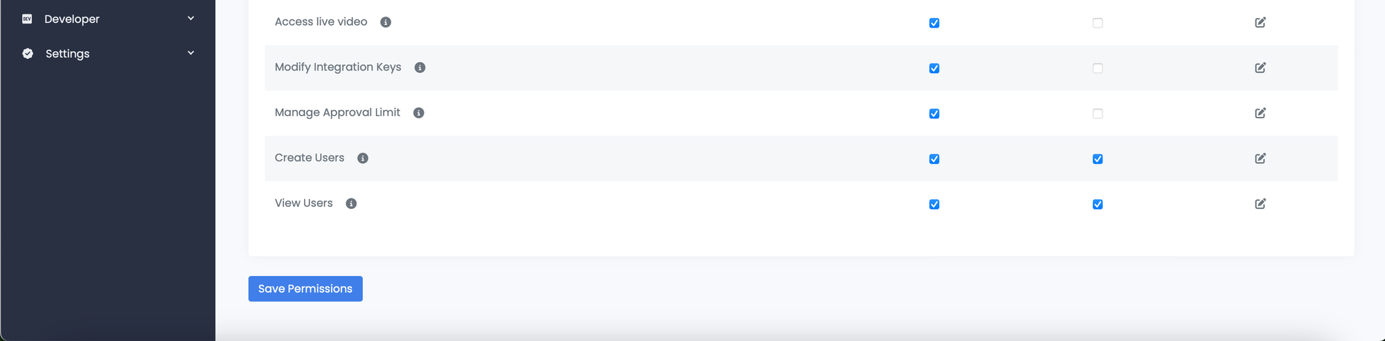 Step 2: Update permissions. The permissions screen will appear. Locate the column of the role you want to edit and adjust its permissions by checking/unchecking the permissions as needed. Once completed, click on the ‘Save Permissions’ button.