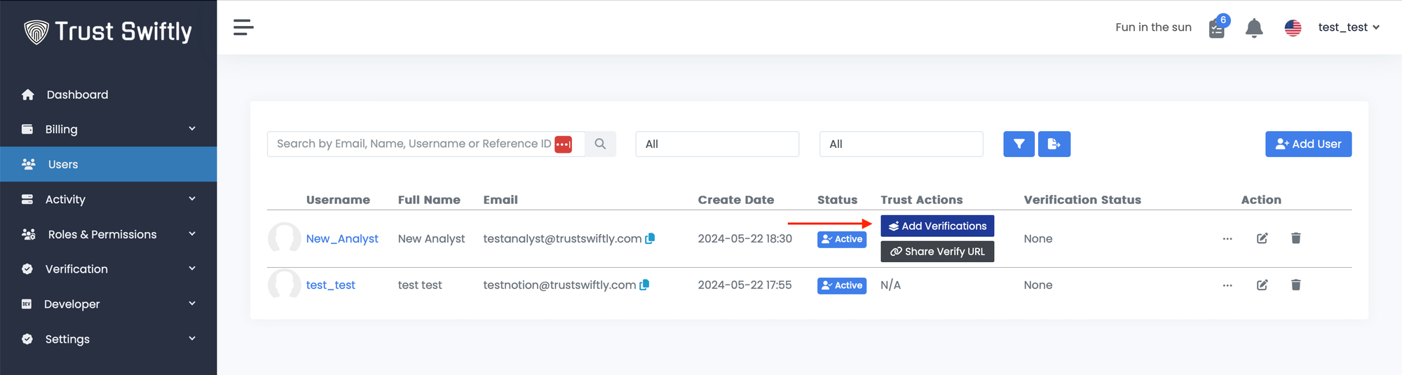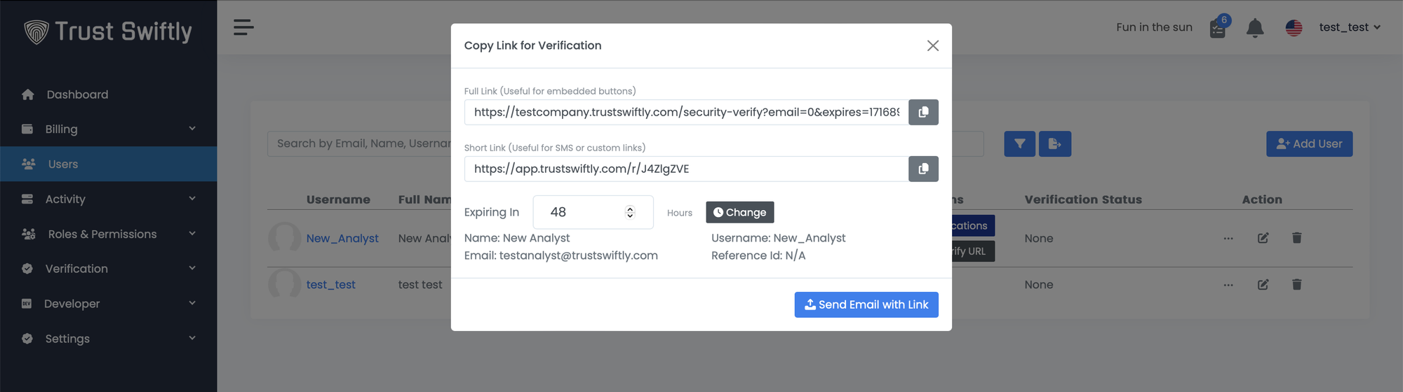 Step 2: Share the verification link. Click on the ‘Share Verify URL’ button to appear in the user row.
