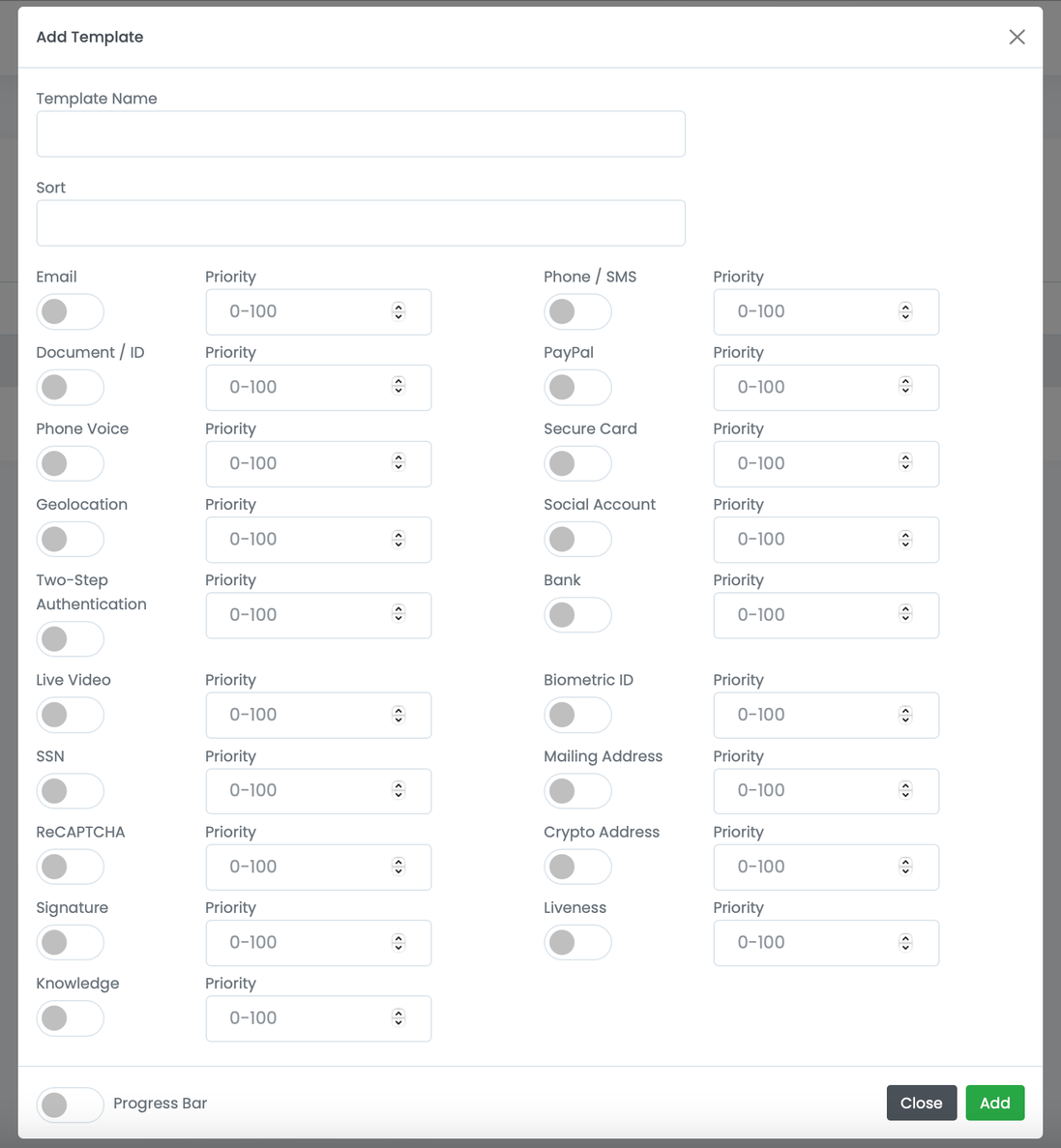 Step 1: Setup a template. A template can be created for users that signup. https://NAME.trustswiftly.com/settings/templates, replacing NAME with the name of your company. Select the default verifications and any ordering if required then click Add.