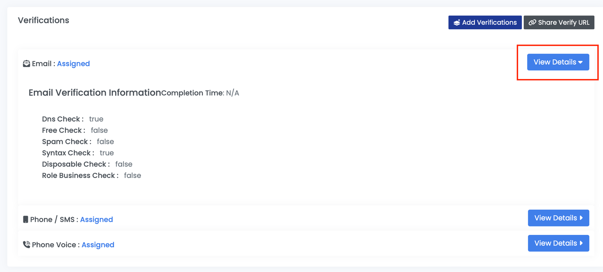 At the end of every row of verification methods, there is an option to learn more about each verification method - when was it completed, and additional details provided by the vendor.