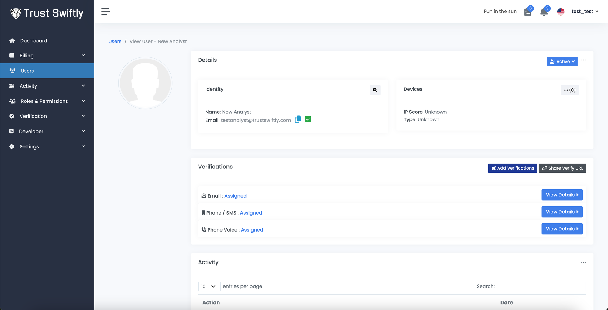 The user’s verification details page will appear. You can learn more about the user’s verification status, learn about the user login activity, leave yourself notes, and edit the details as needed.