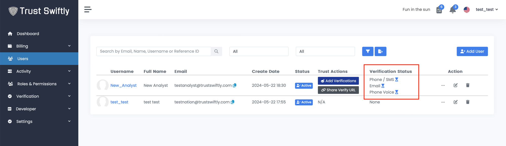 If you want to know more details on each verification, simply click on the ‘…’ menu under the action column, and then click on the ‘View User’ button.