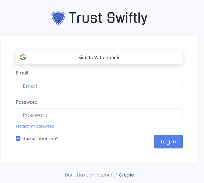 If you forgot your password, you can reset it or use a one-time login link. Visit https://NAME.trustswiftly.com/password/remind, replacing NAME with your selected company name.