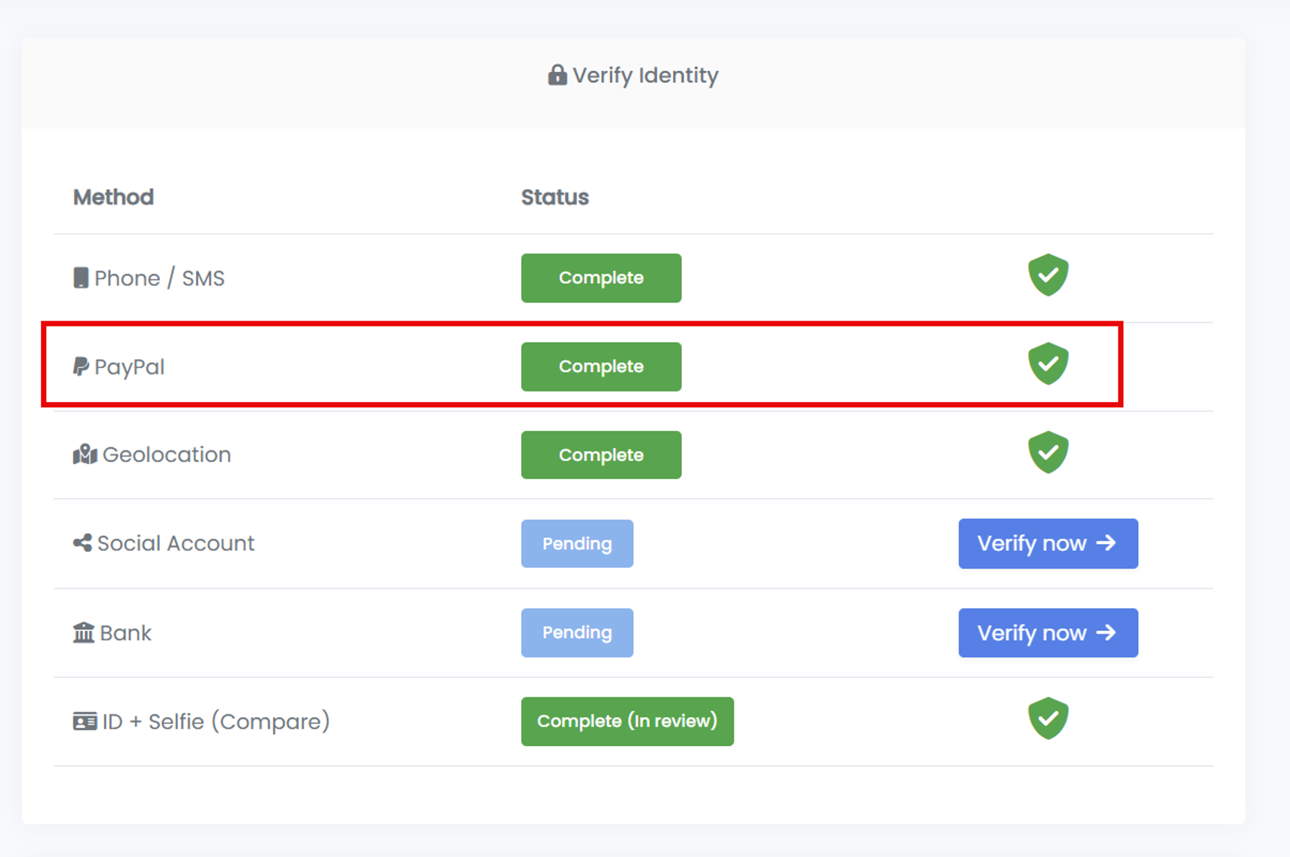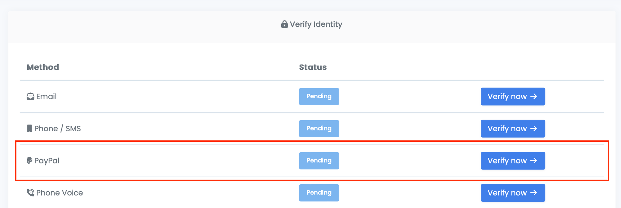 Step 1: Click on the ‘Verify’ button on the PayPal row